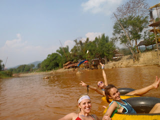 He gave us 10 minutes to memorize the words and we all scrambled to remember them—it felt like we were studying for an exam! Finally he took us out to meet the elephants! He introduced us to each of them and gave us a chance to feed them bananas and other fruit. He then taught us how to climb upon to the elephants by stepping on their legs and holding on to their ear….its a LOT harder than you think! We spent the rest of the morning practicing going in each direction with the elephants and using the commands the guide them, it was a little nerve wracking being on top of this huge creature and trying to control it with just your words and how you use your legs on the backs of their ears. After practicing all the commands we headed back inside to eat a delicious lunch. After lunch we climbed on our elephants and began our trek around the hillside. WE had to sit 2 to an elephant so Alysha and I teamed up and we got to have Faa as our elephant for the afternoon. I got to sit on the head of the elephant first and guide it using the commands we had practiced that day. It was stressful and hard, but so much fun. A few times Faa would sneeze and get her snot ALL OVER US. So gross, but kinda cute….i guess…We rode up to this little overlook place and took a break from the heat and rested for a few minutes before switching positions and Alysha got to lead Faa for the next part of the trek. We walked to this little river where we got off and let the elephants cool off and play in the water while we got a chance to wash and clean the elephants. It was fun to watch the elephants play in the water, the semmed like big dogs just playing and splashing around! After bath time, we walked the elephants back their homes, gave them a kiss and drove back into town. It was an amazing day and I now have a deep love for elephants :)